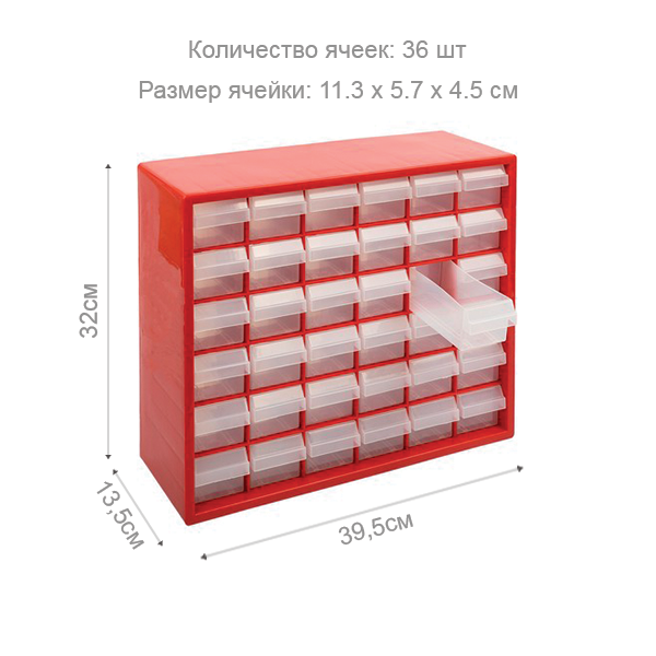 Органайзер пластиковый с выдвижными ячейками ОК-036 цв. красный