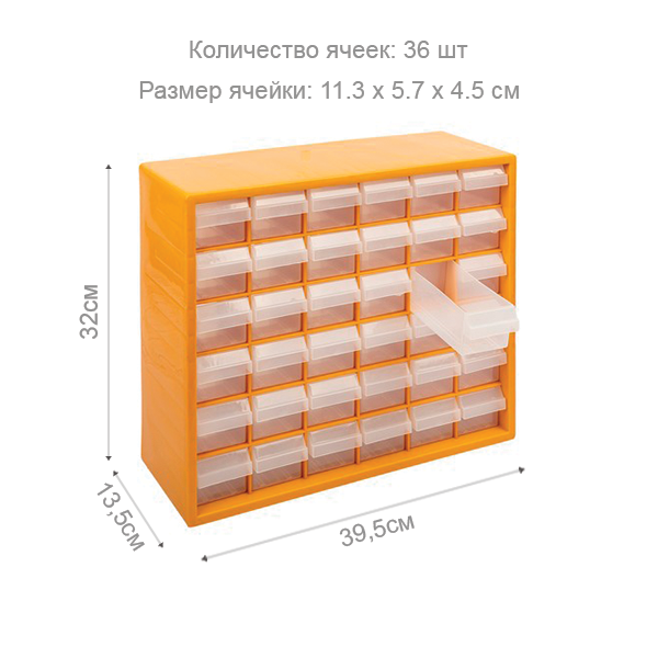 Органайзер-полка ОК -036 имеет 6 ячейк по вертикали и 6 по горизонтали с 36-ю прямоугольными вместительными контейнерами прозрачного цвета. Данный органайзер можно использовать в качестве полки для хранения любых мелочей, бисер, бусы, стразы, пуговицы, бытовые и строительные мелочи, инструменты и рыболовные принадлежности
