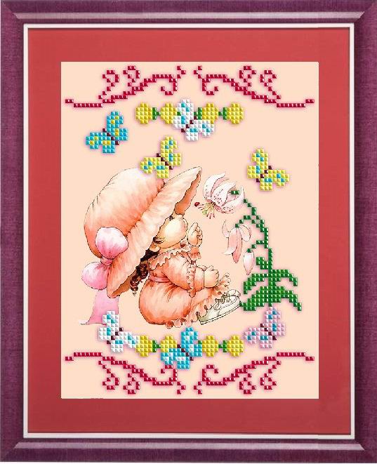 Схема для вышивания бисером Малышка в саду 13x17 см