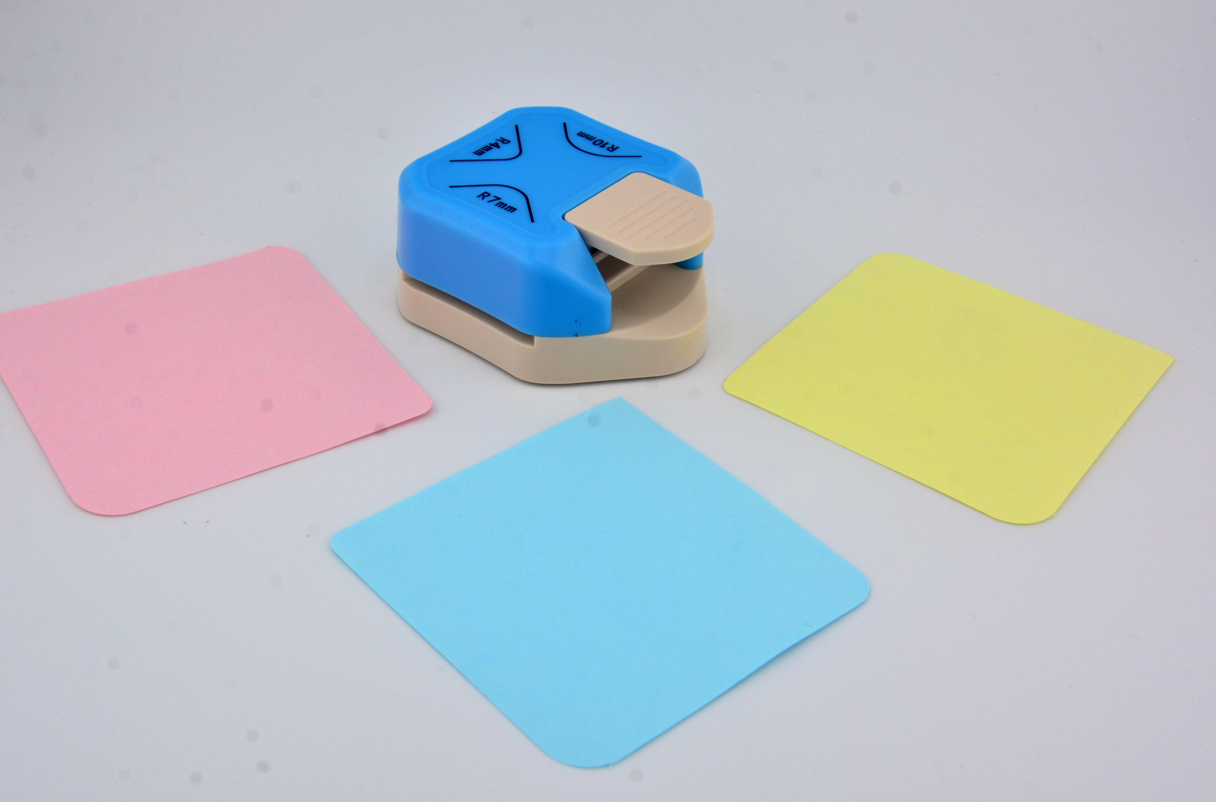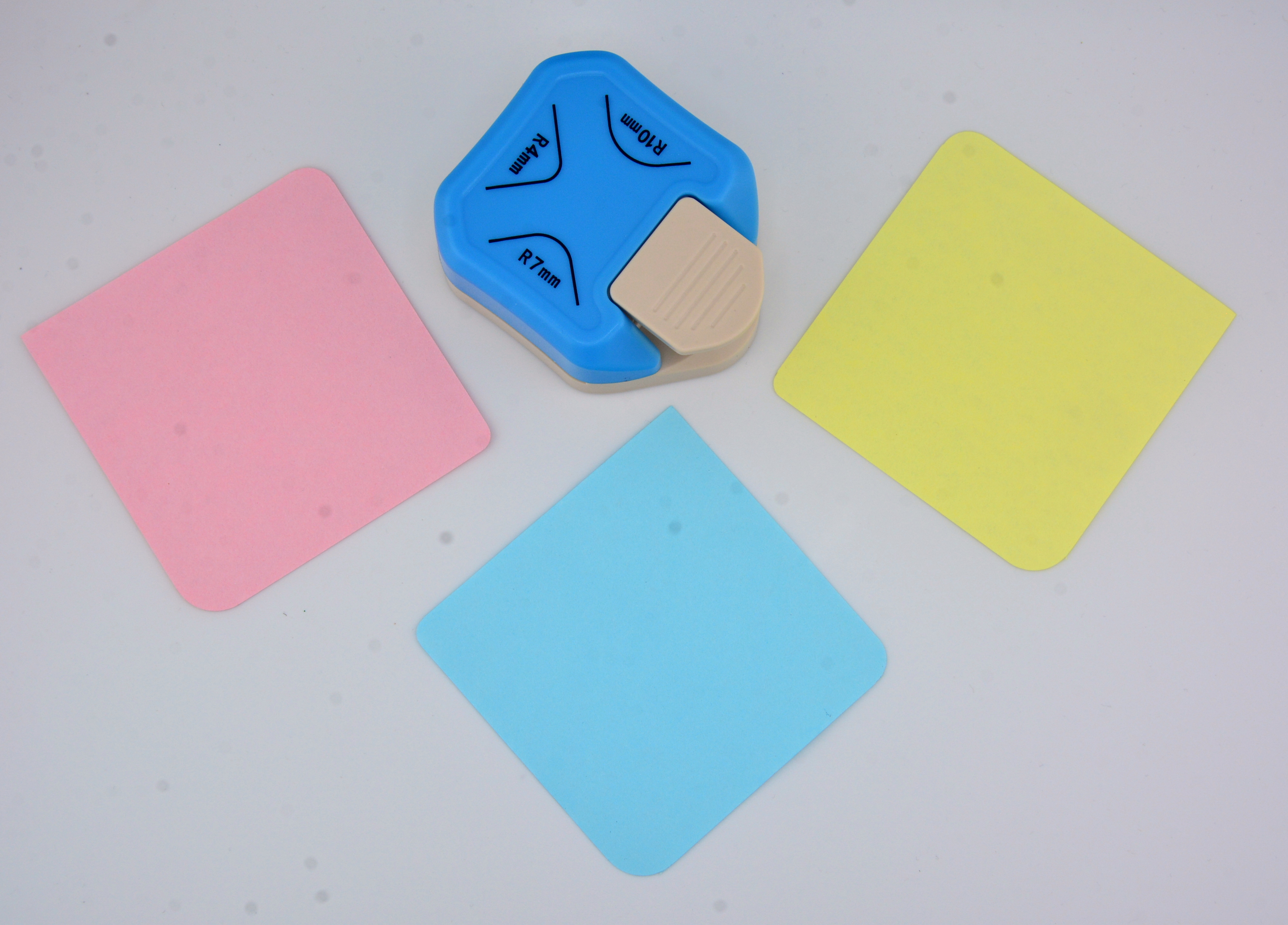 Один дырокол может делать три вида уголков радиусами 4, 7 и 10 мм. Все уголки размечены на корпусе.