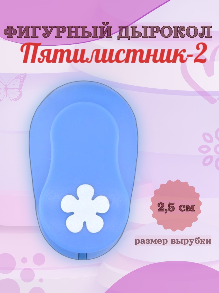 Фигурный дырокол 2,5 см Пятилистник-2 - это классический дырокол, выбивающий рисунок размером 2.5 см. Размер вырубного поля около 2.5 см.