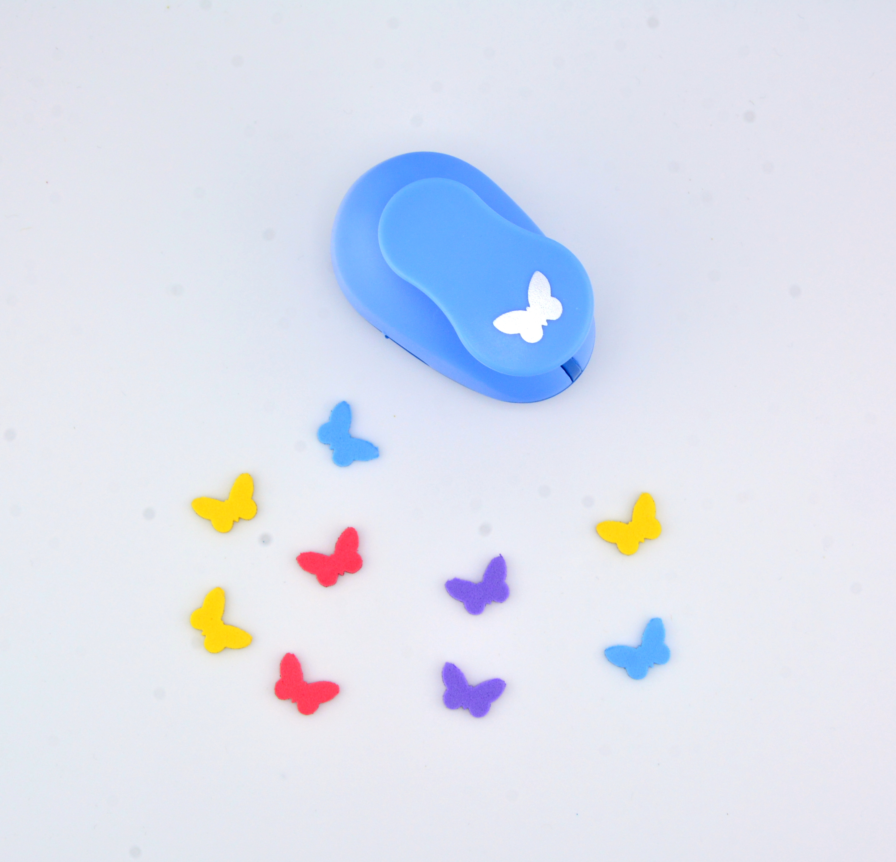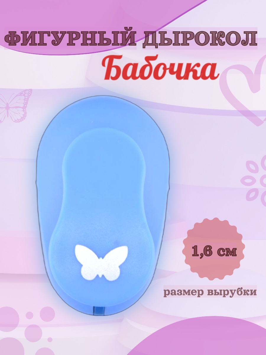 Фигурный дырокол 1.6 см Бабочка - это классический инструмент, выбивающий рисунок размером 1.6 см. Применяется в скрапбукинге для создания декоративных элементов, декорирования открыток, обложек, стикеров и т.д., а также для вырубания конфетти. Эргономичная форма и мягкий ход дырокола делают работу с ним легкой и приятной. Дырокол можно использовать при работе с фоамираном толщиной до 2 мм. Не подходит для фетра, ткани и других рыхлых ворсистых материалов. Не рекомендуется использовать дырокол для работы с бумагой плотностью более 220 г/м². Не используйте дырокол с бумагой малой плотности. Не подходит для рыхлой бумаги (офисной, акварельной и др.).